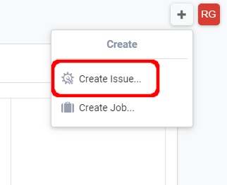 Step 3 – Once “+” is pressed, a pop-up will display to allow the user to create an Issue or Create a Job. Press the “Create Issue” Button.