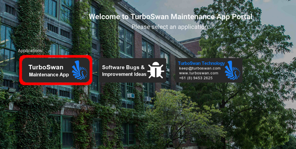 Step 3 – On successful Login, user will automatically navigate to the Landing Page, click on the Maintenance App Icon to view all the data within the software.