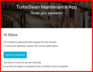Step 5 – You will receive an email with a password reset token, giving 24 hours for the password to be reset. Click the link to continue the process.