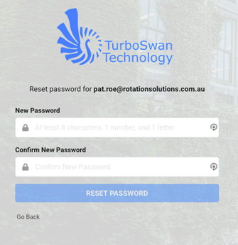 Step 6 – Once the link is clicked, user will be taken to a webpage to input new password details. Input the New Password and confirm by repeating. Once complete, click the “Reset Password” button.