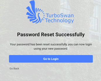 Step 7 – Once password criteria is met and Reset button pressed, user will be prompted with successful password reset result. Keep your new password safe & press “Go to Login” button to access the software!