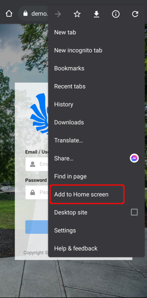 Step 3 – Press the “Add to Home Screen” button.